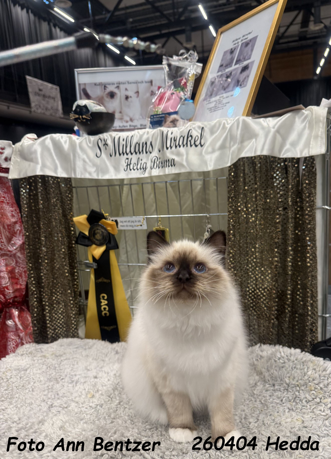 Hon fick en fantastisk fin bedömning och tog ex 1 sitt första kattungecertifikat. Tyvärr var det inte tillräckligt många katter för BIV. Men hon blev nominerad till panelen. Där fick hon en röst och även en röst från domareleven. Ragdollen som vann fick två röster. Jag är så stolt över henne.